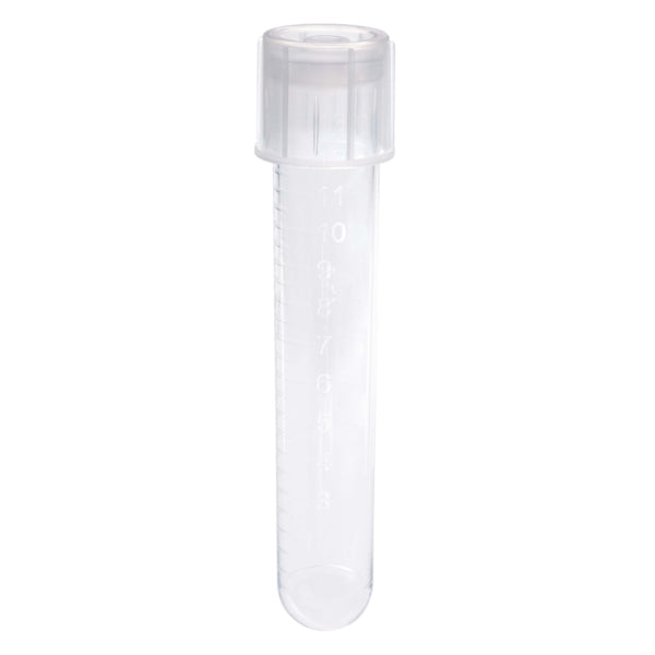 The CELLTREAT 230440 Culture Tube and Dual Cap is a 14mL sterile polystyrene tube ideal for lab use. It features dual caps for vented or sealed positions, molded graduations for accurate measurements, and optically clear polystyrene for excellent visualization of cultures. These tubes are non-pyrogenic, RNase/DNase free, but not autoclavable. Packaged 500 per case.